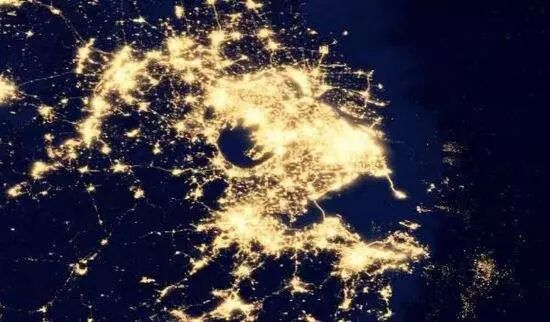 长三角地区夜晚璀璨的灯光在卫星地图上表明这里是中国经济最具活力的地区之一