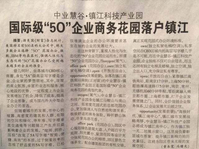 | 国际级“5O”企业商务花园已落户镇江 | |