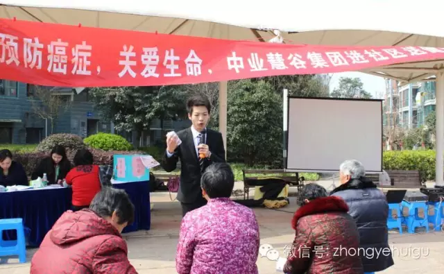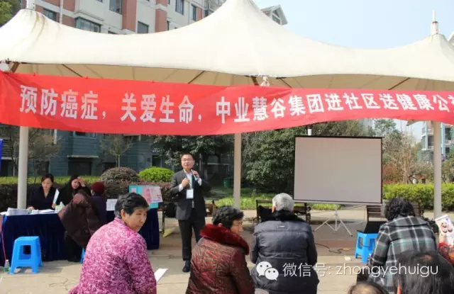 居民纷纷咨询 在众多商业味道很浓的活动中,中业慧谷集团的这种公益爱心活动,无疑成了很大的亮点。大健康产业部总经理闫波亲自主持活动,他说,在集团加入大健康产业的今天,关爱生命、关注健康是中业慧谷集团的神圣使命。希望我们的努力,能够让大家树立全新的防癌理念,养成良好的癌症预警习惯。